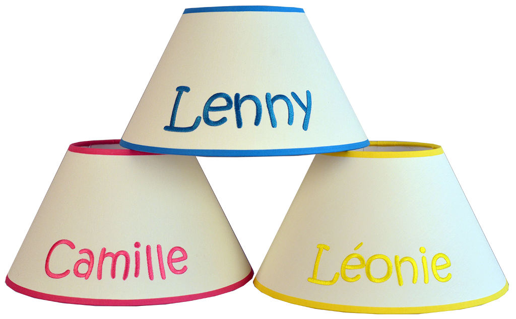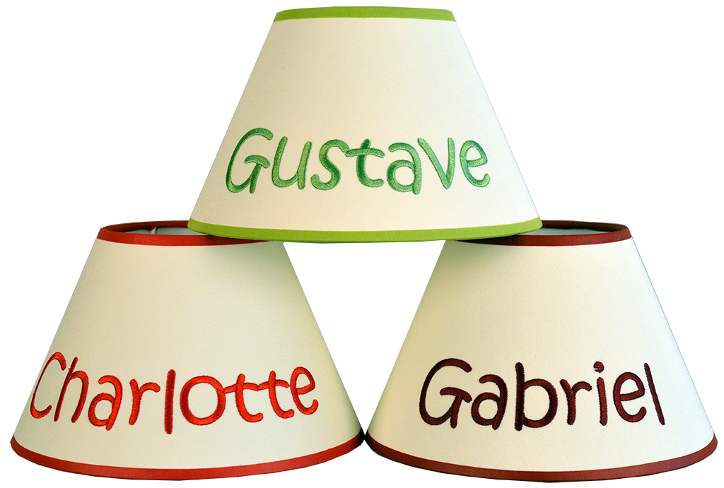 Nous vous proposons de personnaliser des abat-jour en brodant des prénoms, des textes …